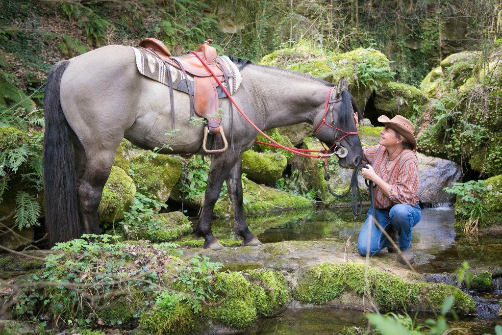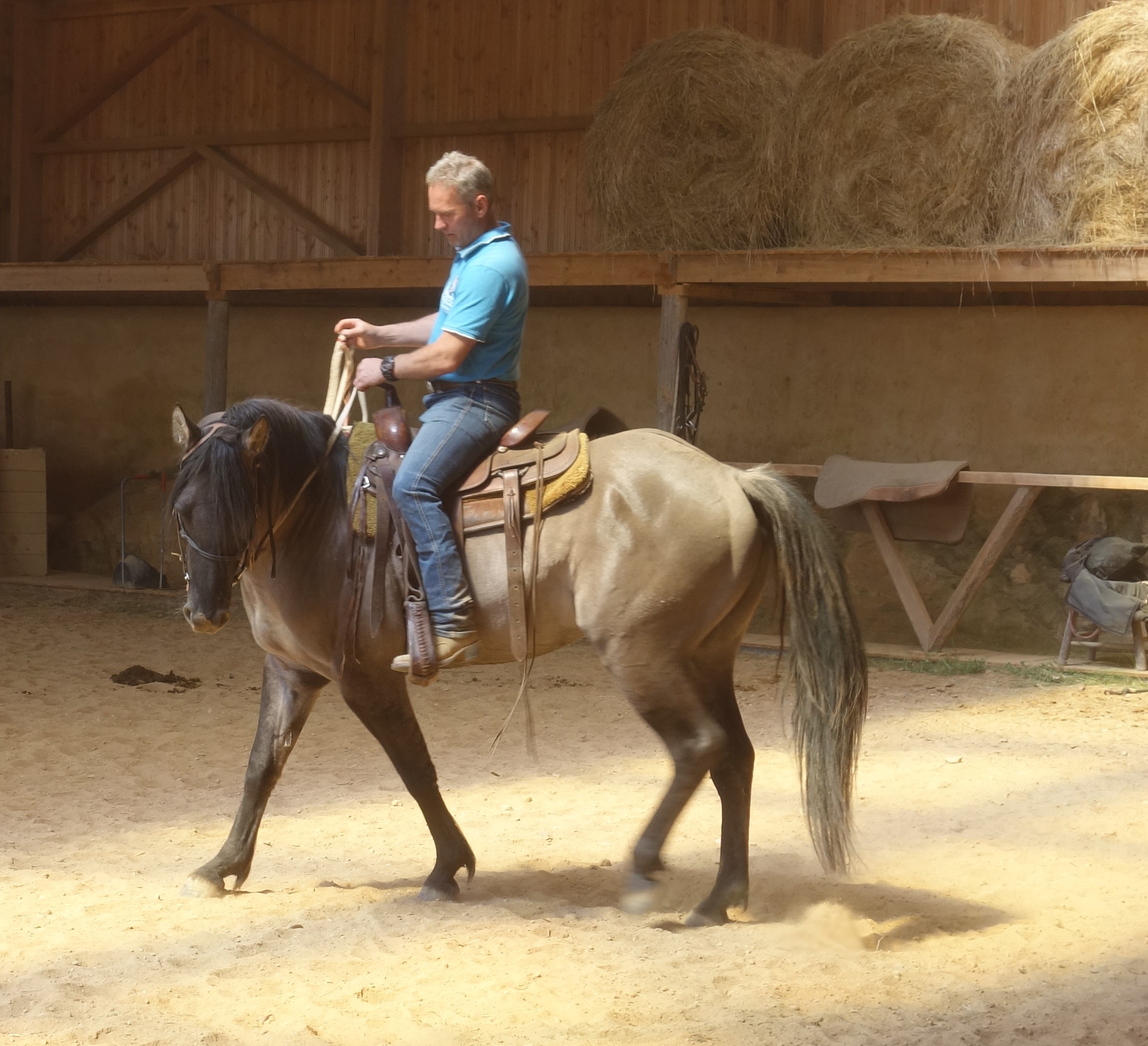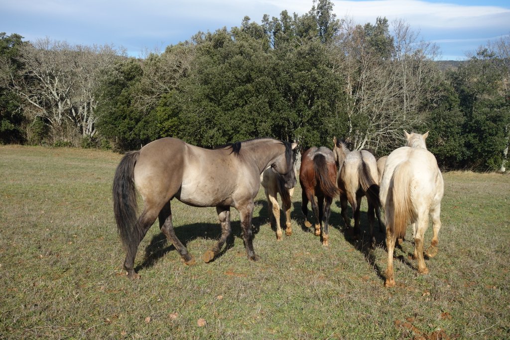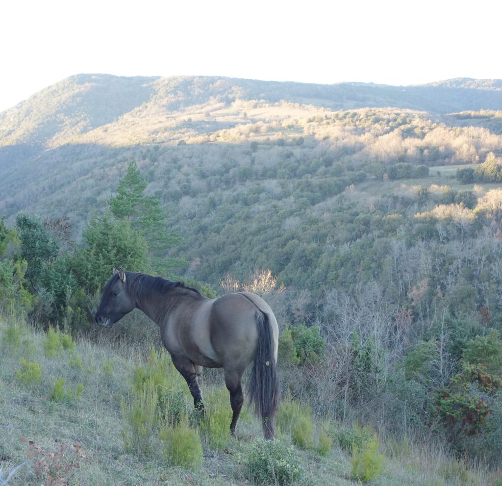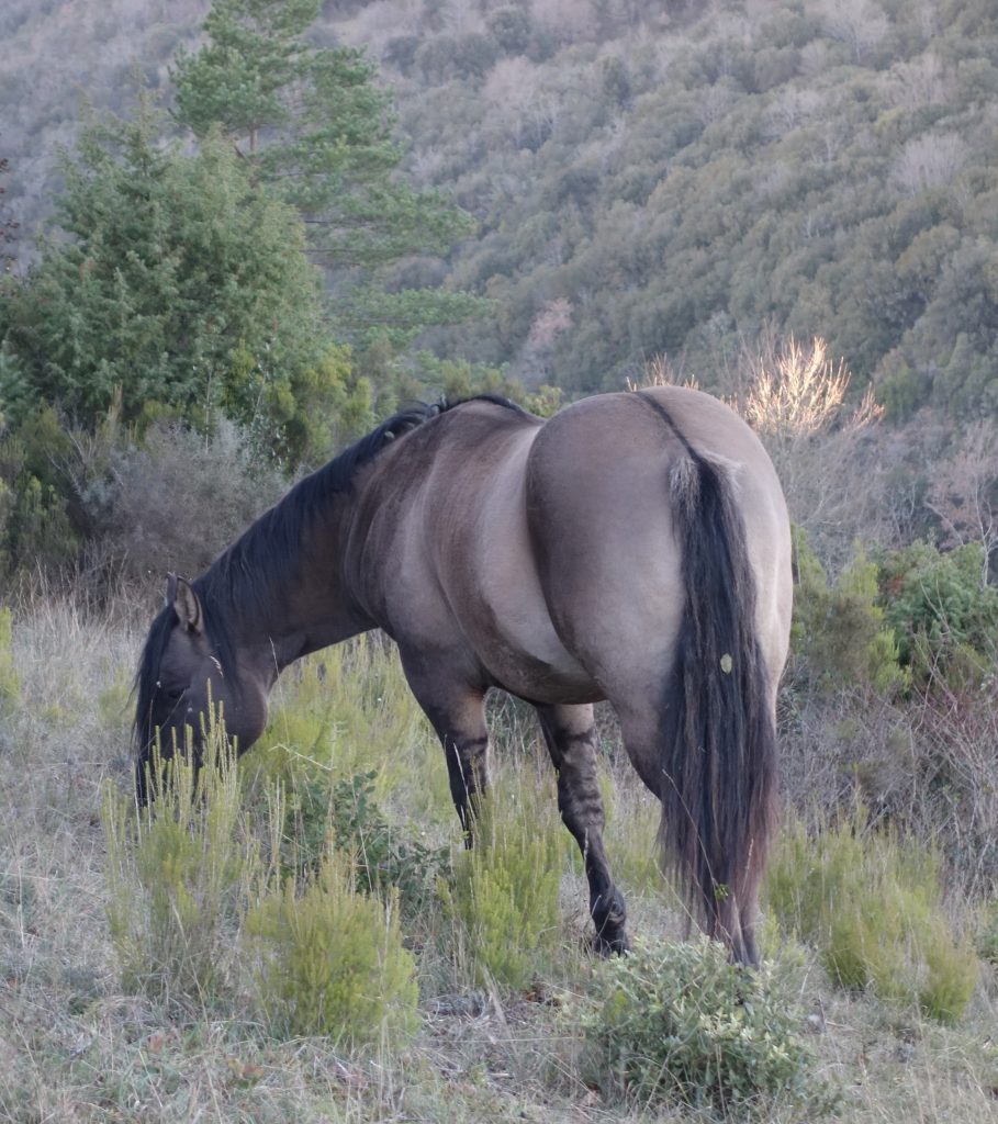 TG MOONWALKER, magnifique étalon Quarter Horse, 100% Fondation NFQHA, Grullo, né en 2016, arrivé chez nous en 2019. Très beau modèle typé RANCH, « No marking », mental exceptionnel. Homozygote DUN. Il vit avec une jument , au pré. Il est aussi monté et très agréable sous la selle avec nous, avec de très beaux moments de partage en extérieur et en travail sur le plat.
