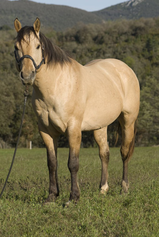 Il a été le pilier de notre élevage. QUARTER HORSE, Dunskin Roan, 91 % Fondation NFQHA, morphologie typée Ranch, avec de l’os, de bons pieds, 1.55m, par MISCHIEF DORE ( USA ) et WOLVERTON JADE ( Canada ).
