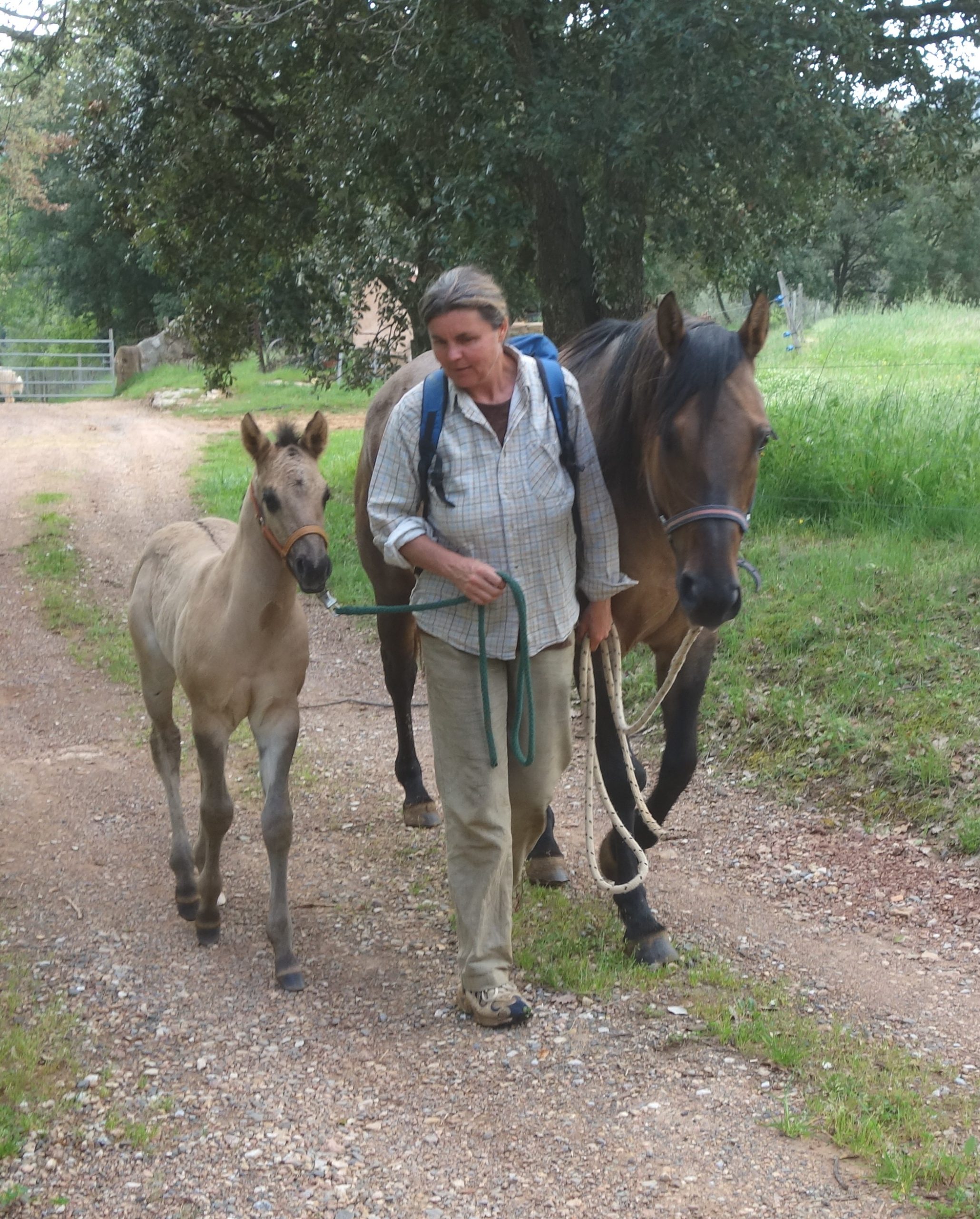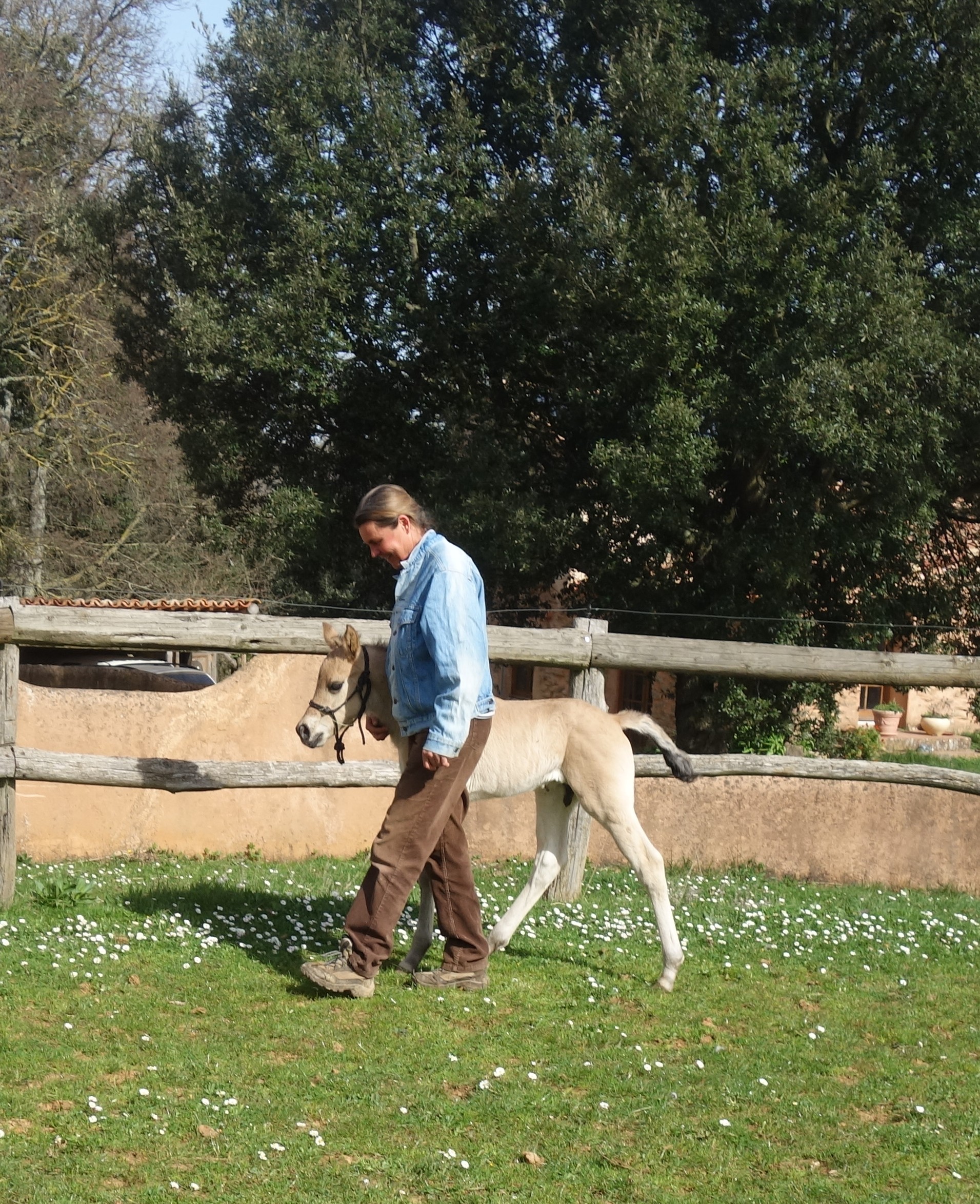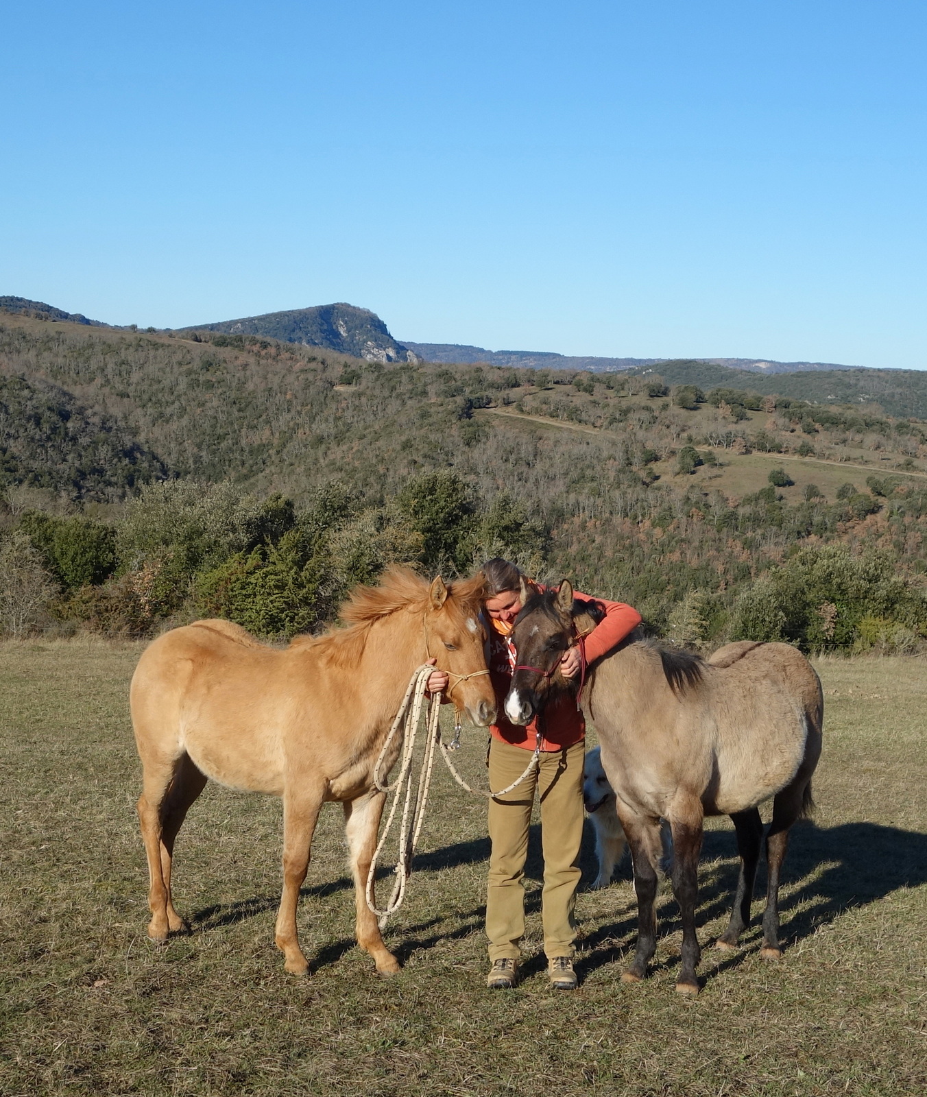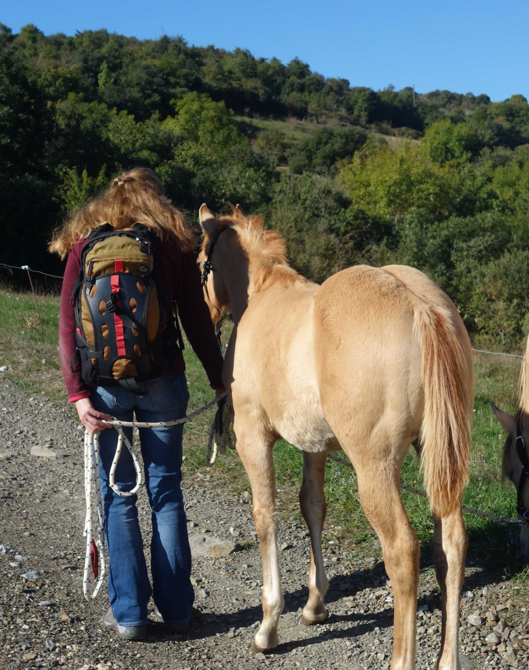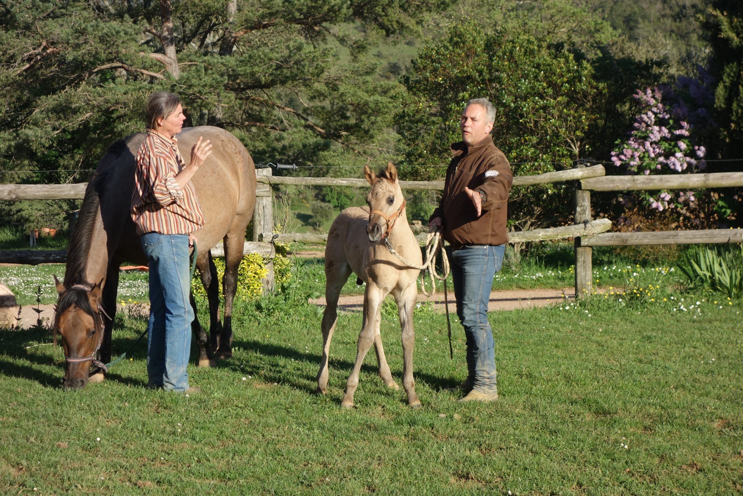 Le sevrage se fait en douceur, tardivement ( vers 10 mois ) et les poulains apprennent les bases de l’éducation : bases du travail à pied, font déjà des balades seul en main de plusieurs km avec des obstacles naturels ( village, parcours nature… ) , apprécient le pansage, le contact, les gratouilles, donnent les pieds, leçon de van, attache, travail de la grégarité….De vrais poulains de Ranch !