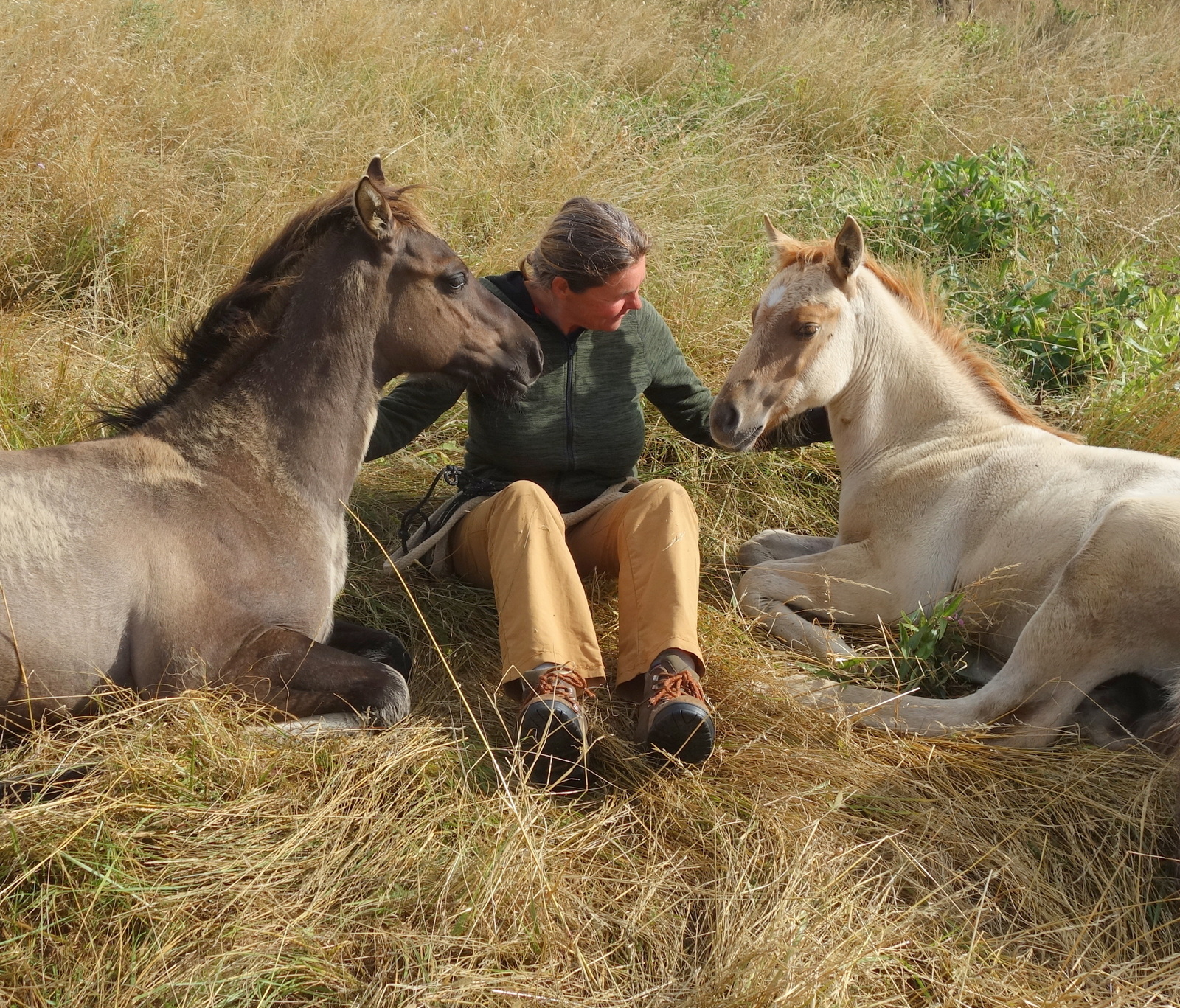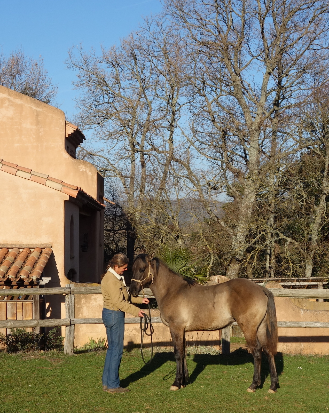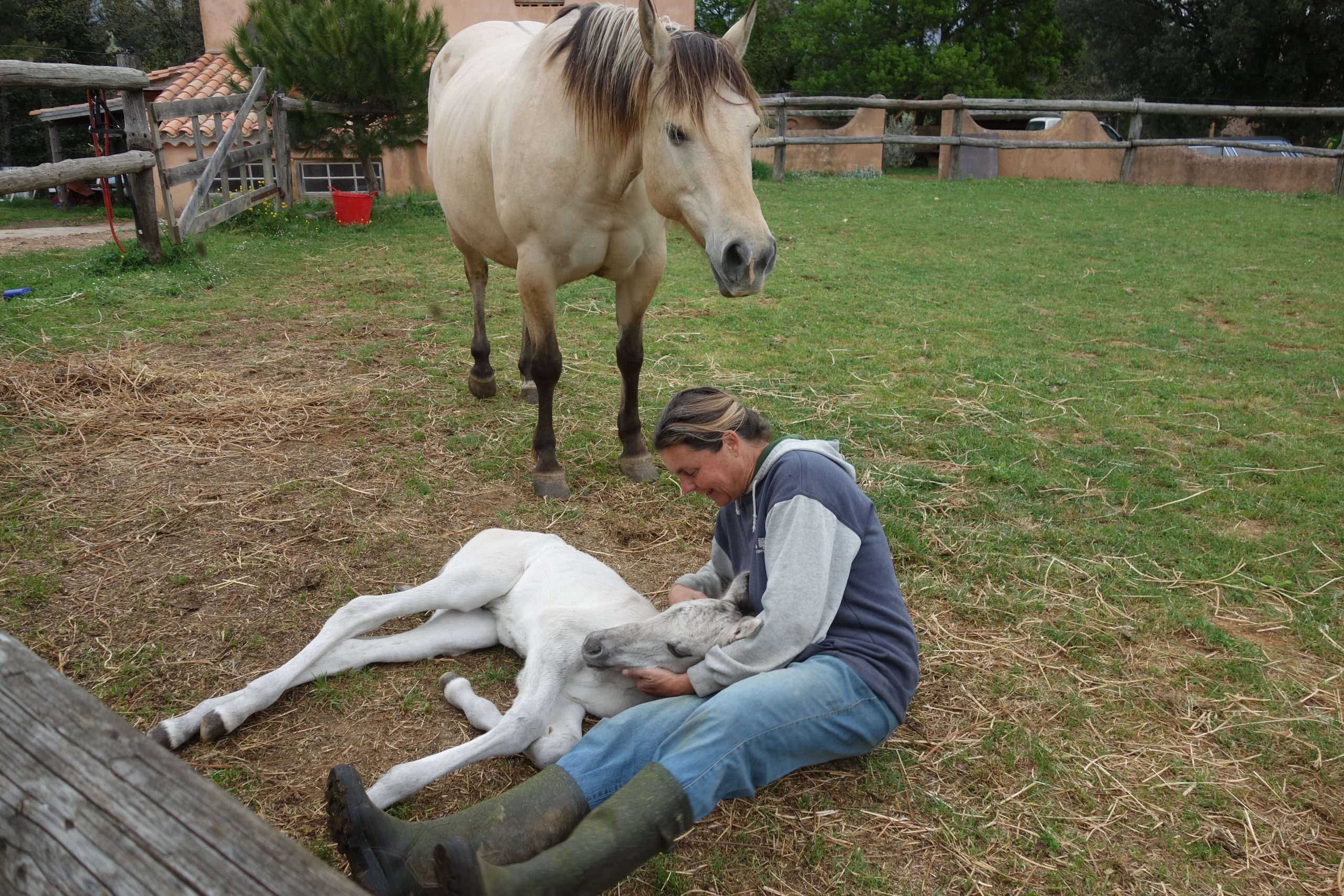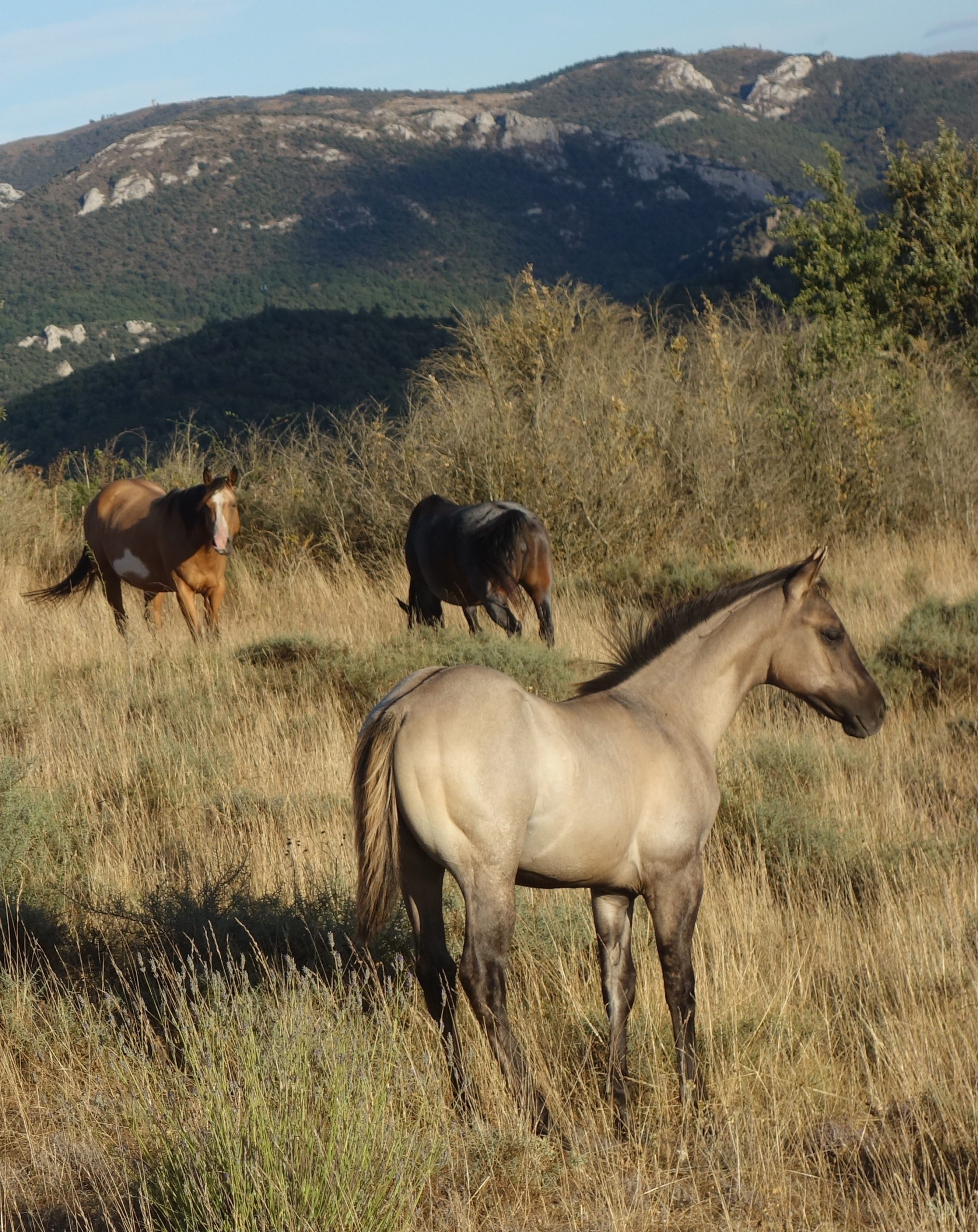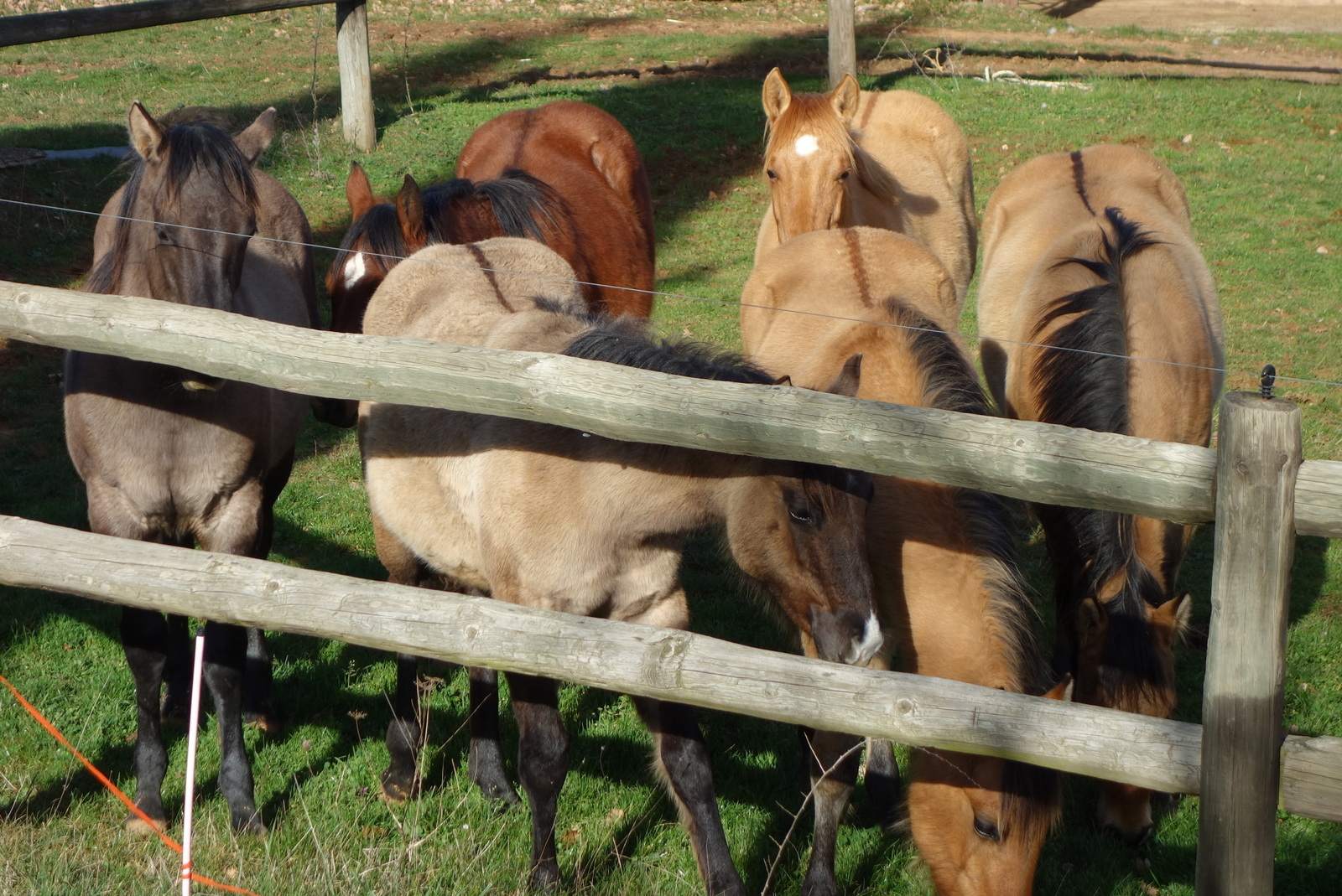 Le sevrage se fait en douceur, tardivement ( vers 10 mois ) et les poulains apprennent les bases de l’éducation : bases du travail à pied, font déjà des balades seul en main de plusieurs km avec des obstacles naturels ( village, parcours nature… ) , apprécient le pansage, le contact, les gratouilles, donnent les pieds, leçon de van, attache, travail de la grégarité….De vrais poulains de Ranch !