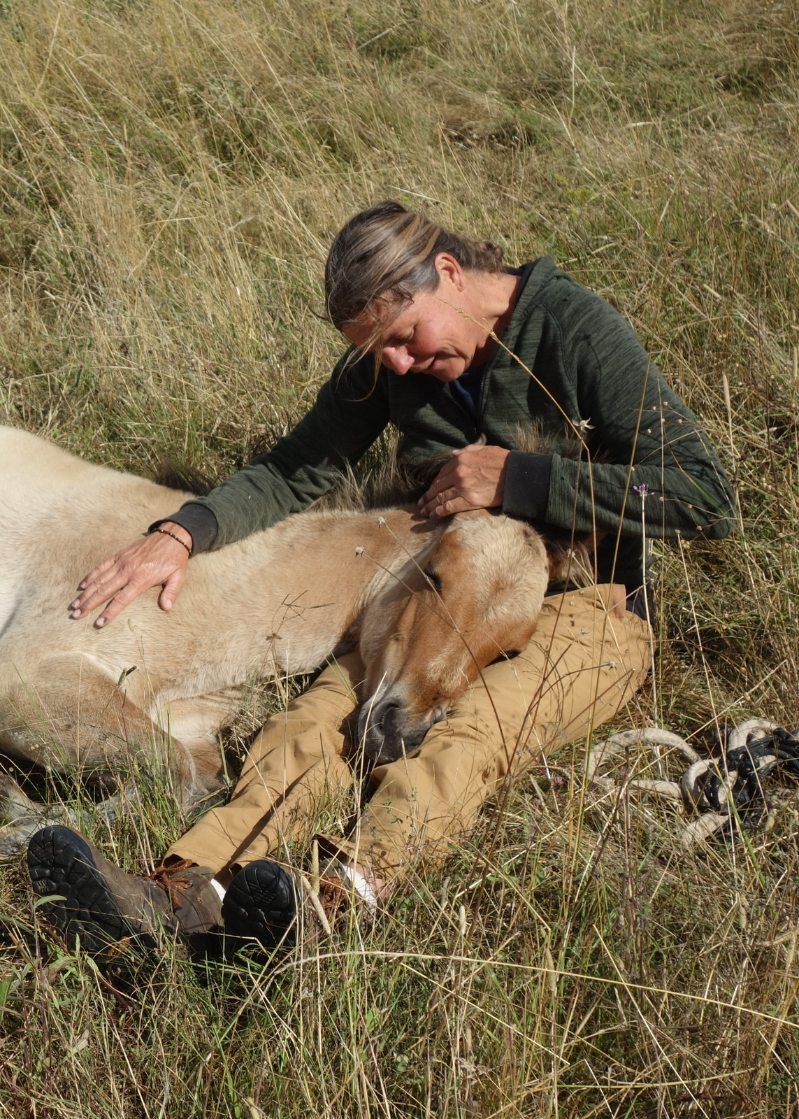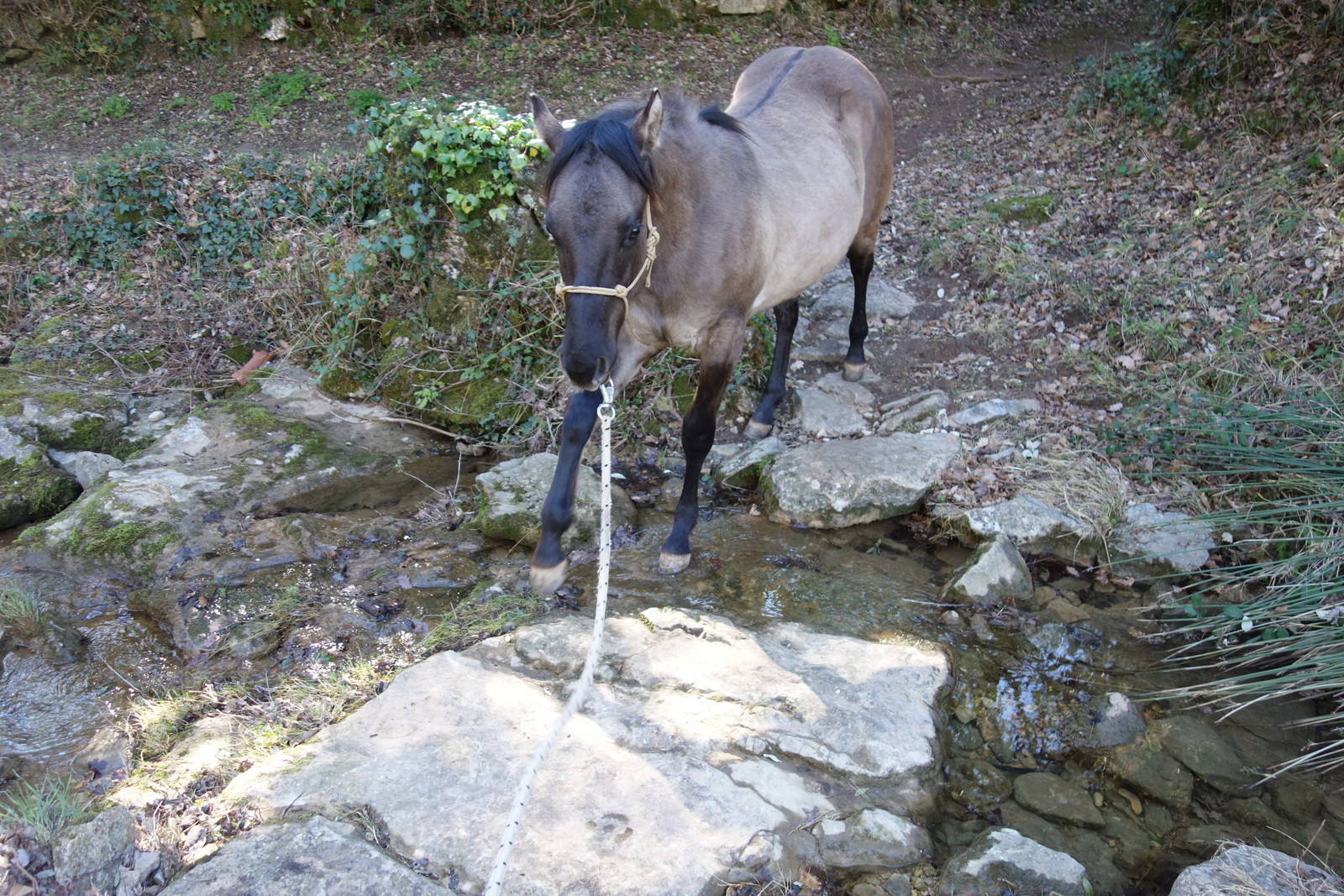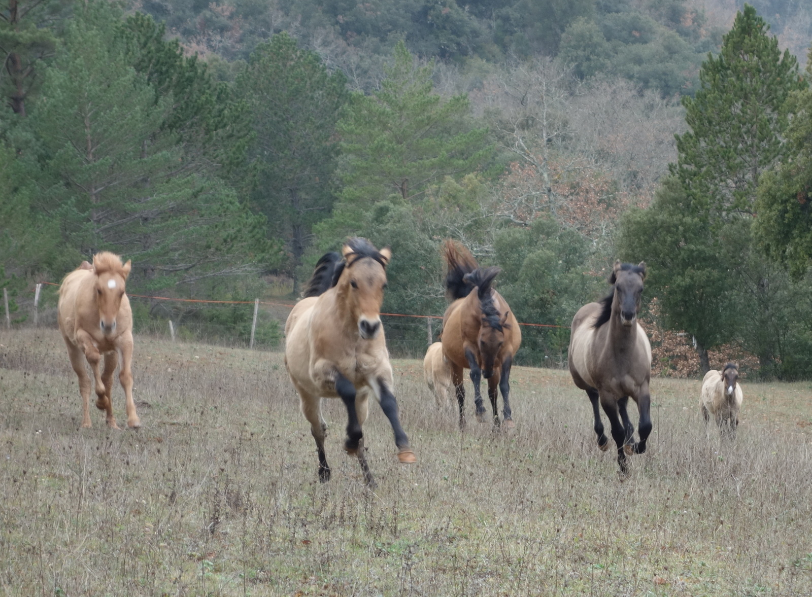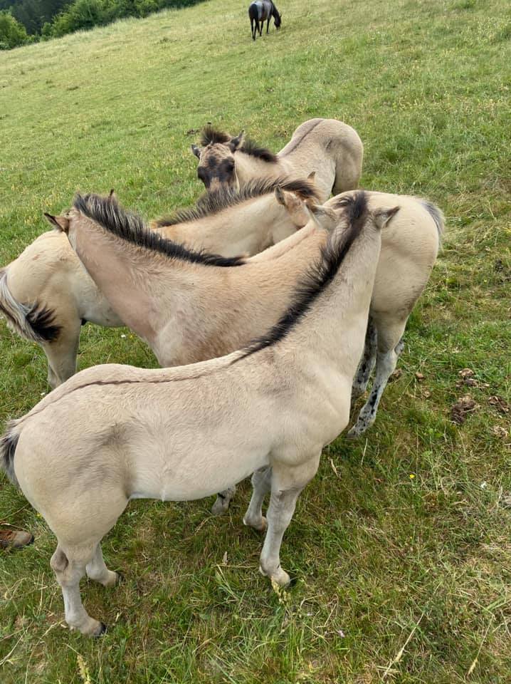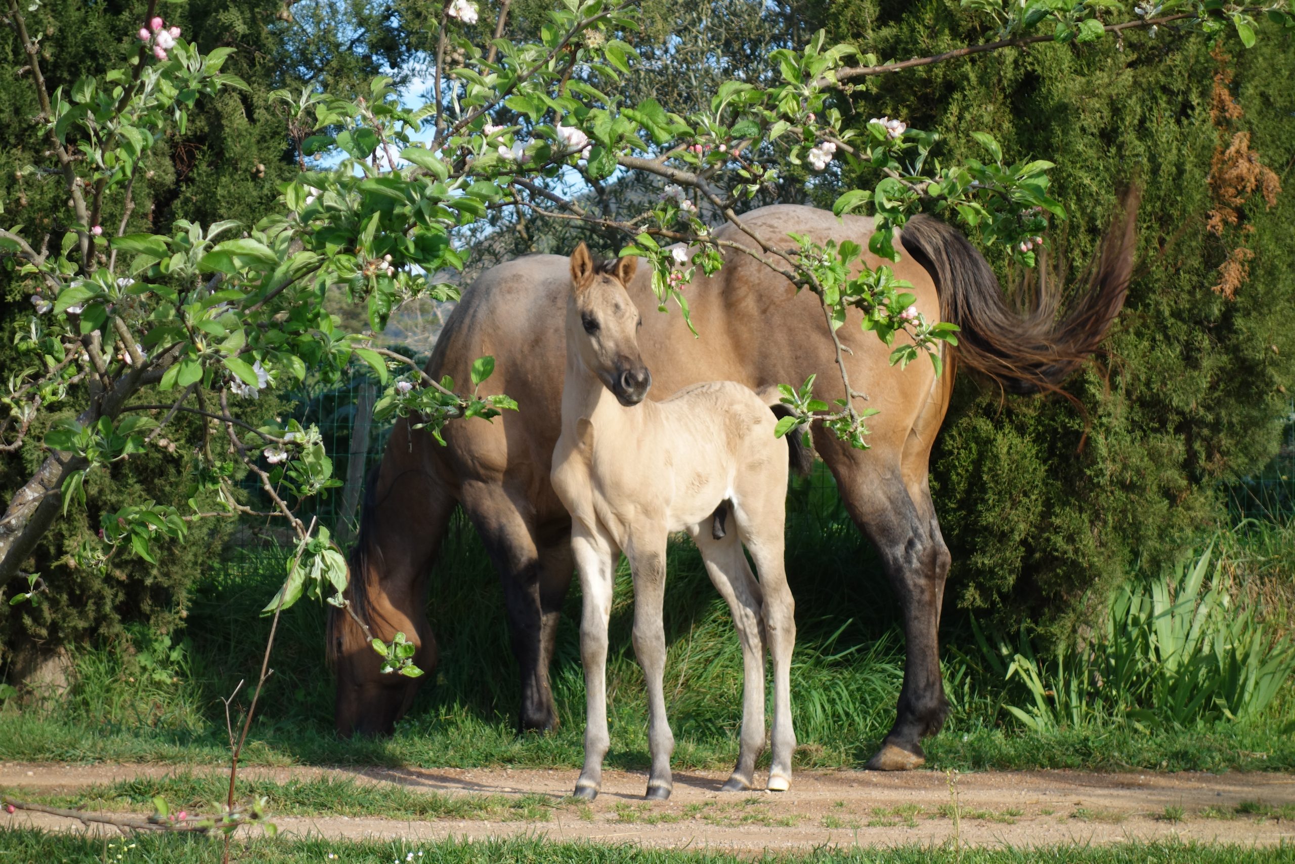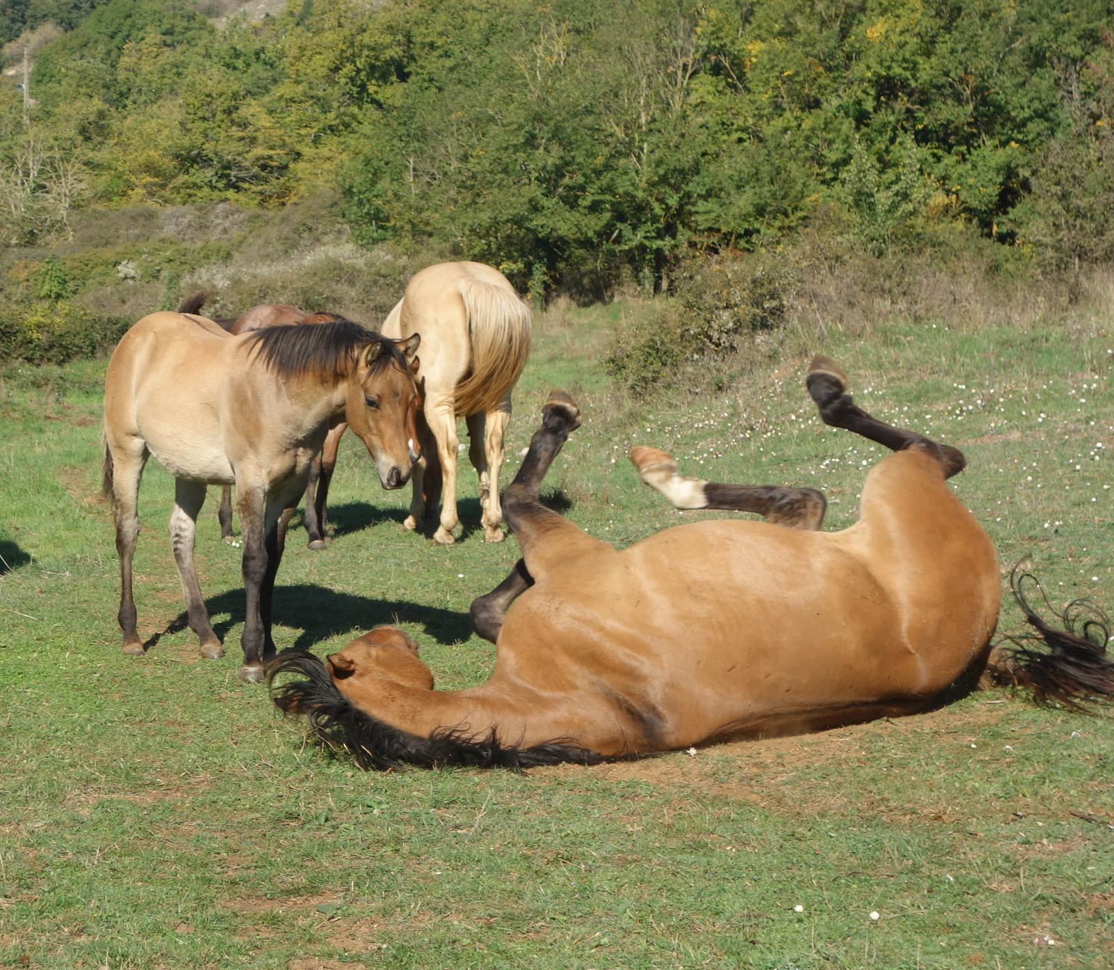 Le sevrage se fait en douceur, tardivement ( vers 10 mois ) et les poulains apprennent les bases de l’éducation : bases du travail à pied, font déjà des balades seul en main de plusieurs km avec des obstacles naturels ( village, parcours nature… ) , apprécient le pansage, le contact, les gratouilles, donnent les pieds, leçon de van, attache, travail de la grégarité….De vrais poulains de Ranch !